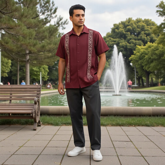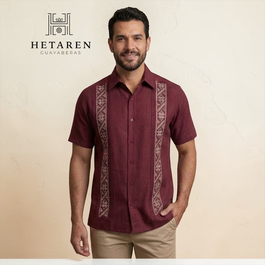 Guayabera Manga Corta MOD.054 Modelo Marcos Color Vino