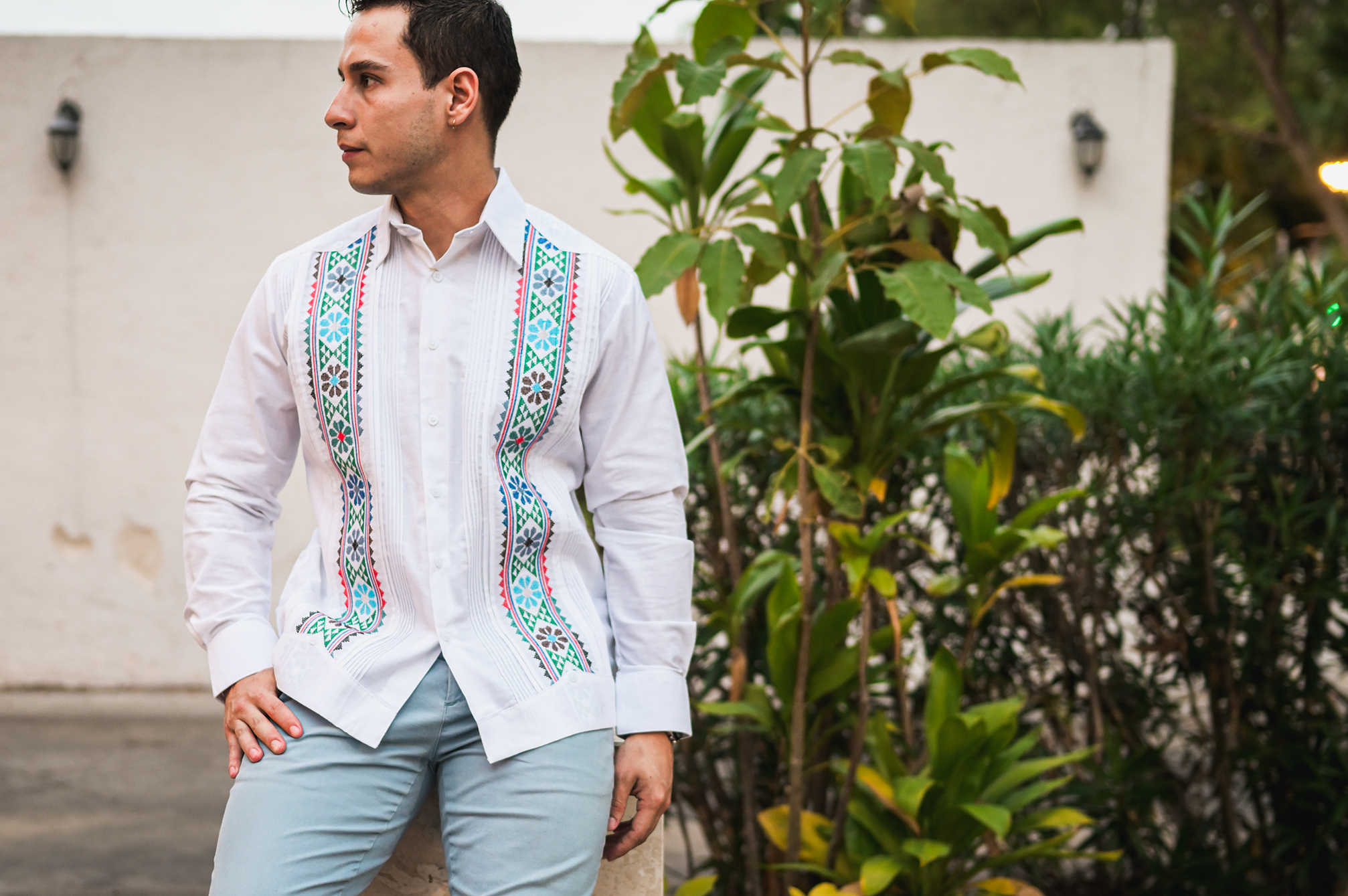 Guayabera Manga Larga MOD.077 Con Bordado De Flores colores