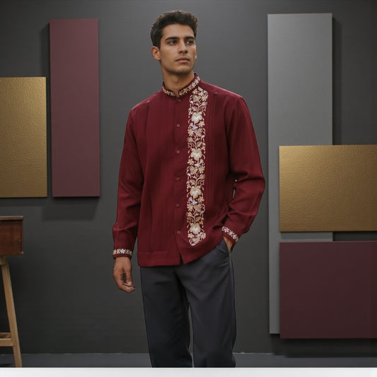 Guayabera Manga Corta MOD.054 Modelo Marcos Color Vino