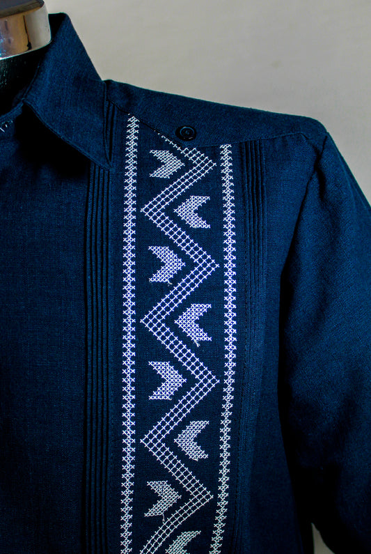 Guayabera Manga Larga MOD.078 Con Bordado de Flechas azul y gris