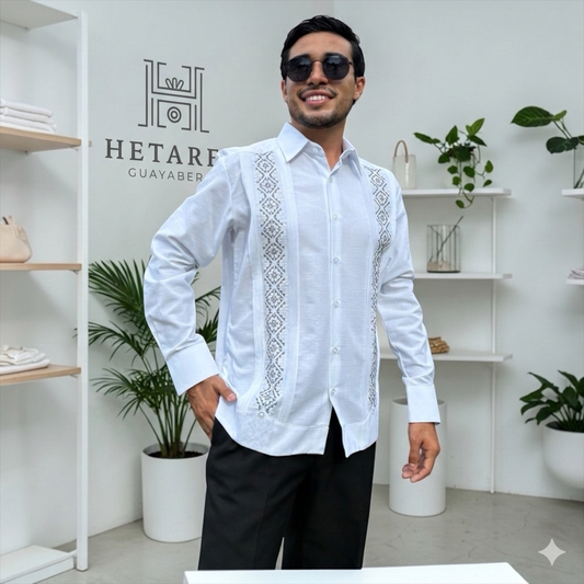 Guayabera Manga Larga MOD.043 con Bordado de Rehilete