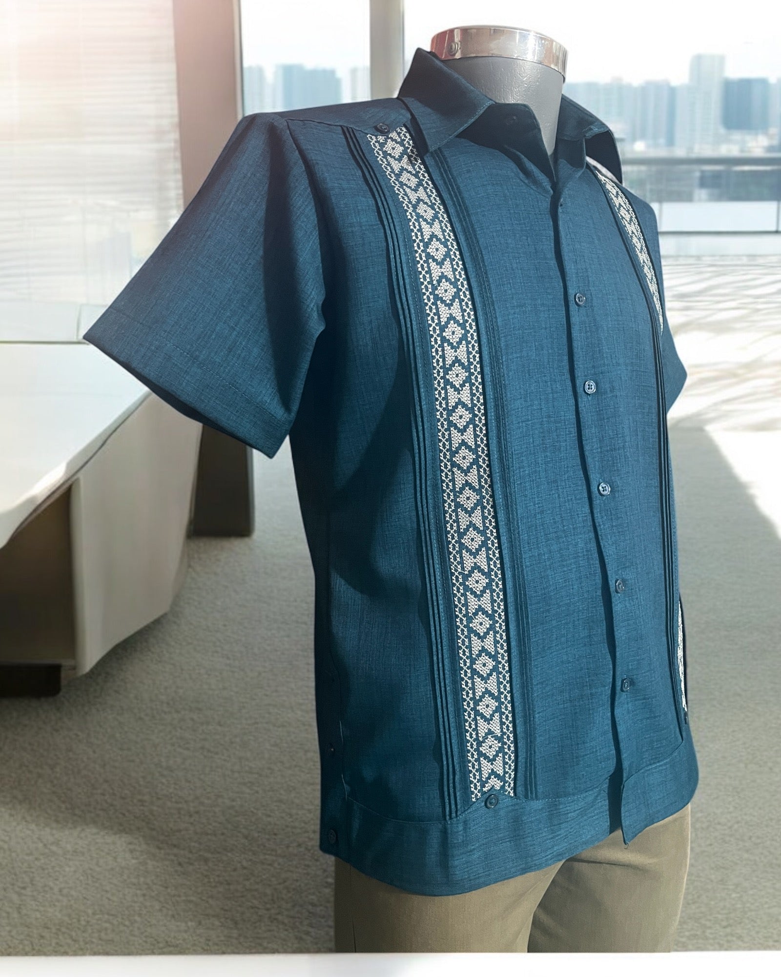 Guayabera Manga Corta MOD.068 Color Gris con bordado Tuxpan