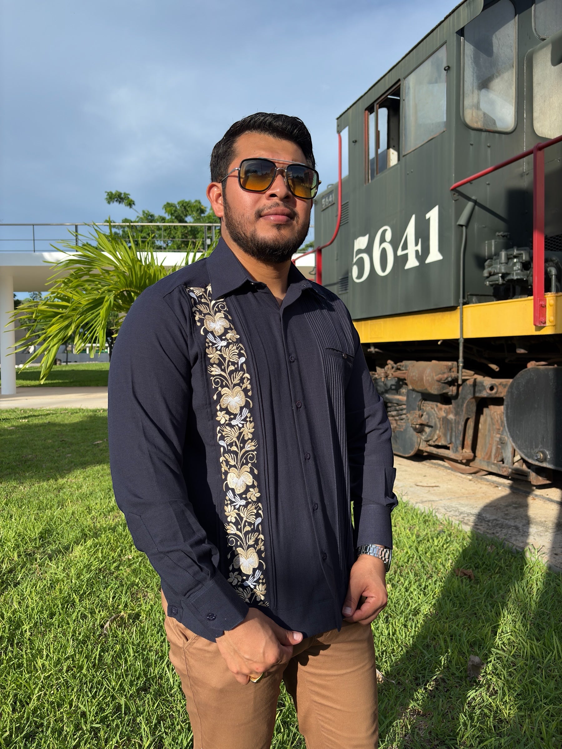 Guayabera Manga Larga MOD.001 bordado Colibri sin bordado en cuello y puño